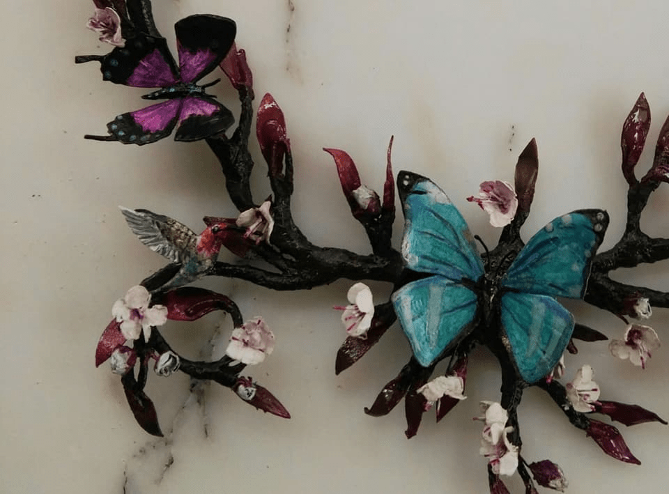 Con un estilo orgánico y colorido pongo todo mi empeño y pasión en crear joyería, retratos, ilustraciones y esculturas con papel recortado, en pasta y maché; de elementos de la naturaleza mezclados con fantasía, de diversos personajes originales.