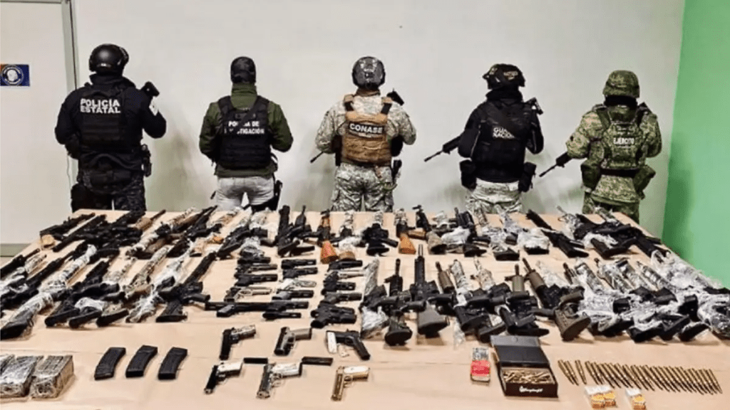 Pie de Foto en La Columna: Decomiso de armas por parte de autoridades mexicanas. / Cortesía.