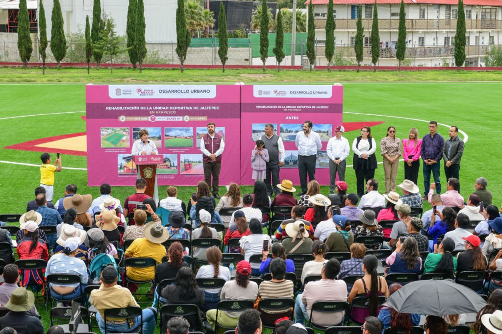La Gobernadora Delfina Gómez Álvarez inauguró la rehabilitación de la Unidad Deportiva de Jaltepec, en Axapusco, obra que beneficiará a más de 7 mil habitantes de la región del Valle de Teotihuacán.