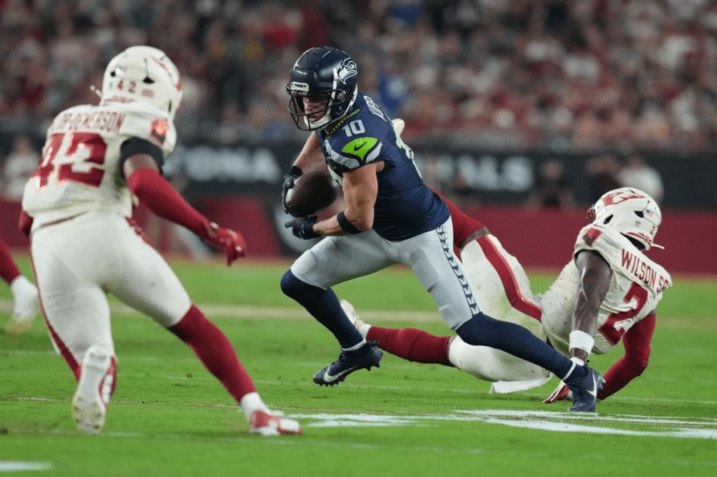 Glendale. Jason Myers conectó un gol de campo de 52 yardas cuando el tiempo expiraba, Sam Darnold lanzó para 242 yardas y un touchdown, y los Halcones Marinos de Seattle resistieron apenas un intento de remontada de Kyler Murray y los Cardenales de Arizona para ganar 23-20 este jueves.