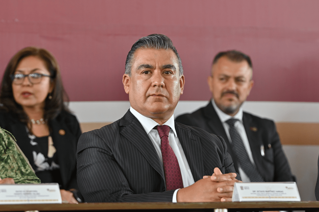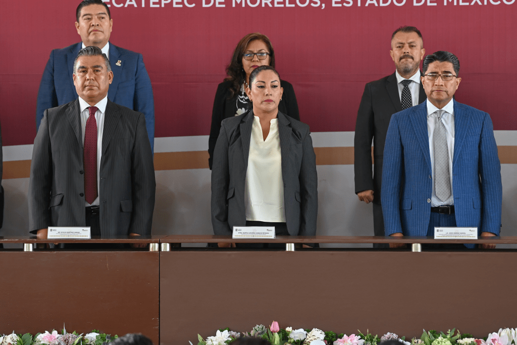 ● La diputada Martha Azucena Camacho (morena), presidenta de la Directiva, y el legislador Octavio Martínez (morena) participaron en la ceremonia realizada en el Centro Comunitario Ecatepec “Casa de Morelos”.