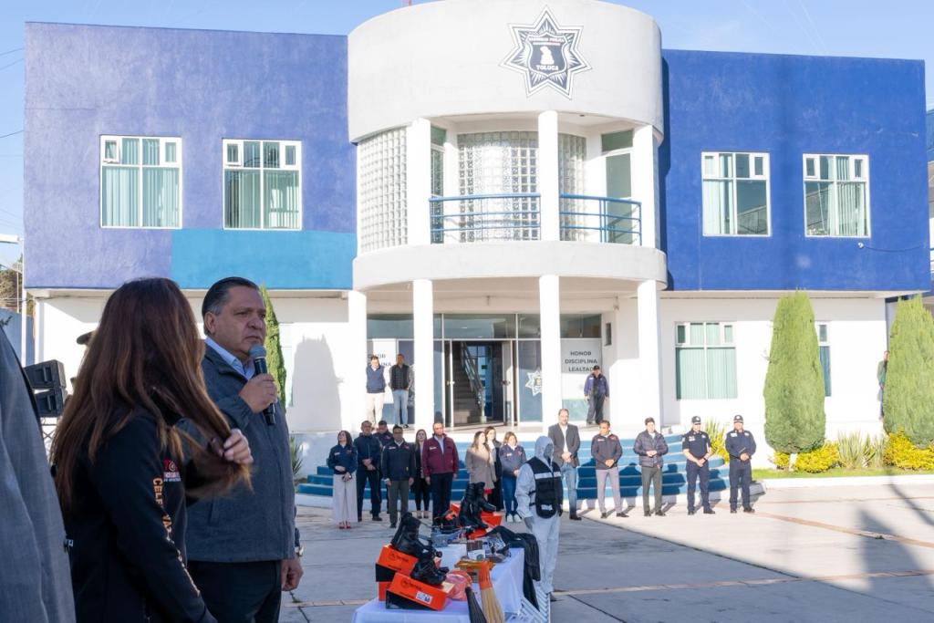 Previamente, el alcalde encabezó el pase de lista de la fuerza policial de Toluca y entregó equipo táctico y herramientas, entre ellas chalecos, botas, palas e impermeables, además de una cortadora de concreto y un dron para obtener imágenes y puntos de referencia de sus trabajos a la Célula de Búsqueda, gestionadas por el Instituto Municipal de la Mujer, con el objetivo de facilitar su labor y hacer más eficiente su actividad en beneficio de la población.