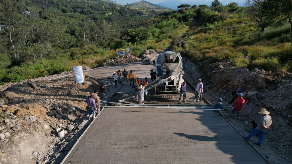 La pavimentación con concreto hidráulico se realizó únicamente en el tramo necesario para garantizar un paso seguro, y los trabajos complementarios fueron ejecutados con recursos propios del Gobierno Municipal de Ixtapan de la Sal.