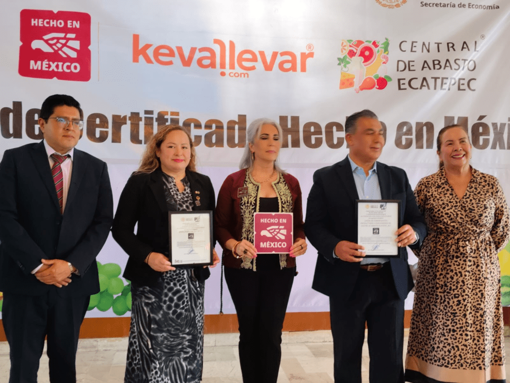 Hoy recibimos en la Central de Abasto Ecatepec y kevallevar.com el sello «Hecho en México» que otorgó el gobierno de México por parte de la Secretaría de Economía que representa el Secretario Marcelo Ebrard, a través de la Titular del programa, la Lic. Bárbara Botello.