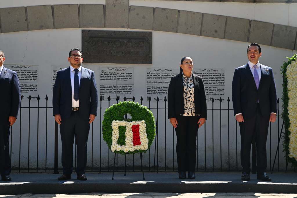 La diputada Martha Azucena Camacho (morena), presidenta de la Directiva, y el legislador Gabriel Kalid Mohamed (morena) participaron en el homenaje a los insurgentes que se impusieron al ejército realista el 30 de octubre de 1810.