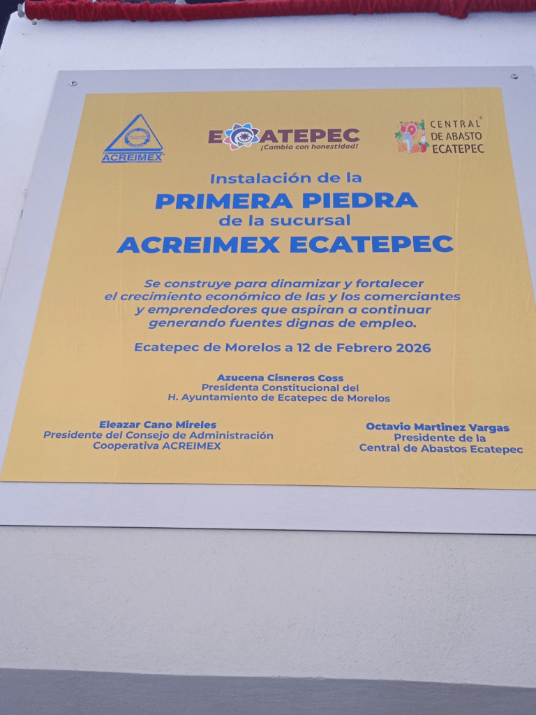 Con el propósito de ofrecer alternativas de financiamiento más accesibles para todos los comerciantes en general, integrantes de la Mesa Directiva de la Central de Abasto de Ecatepec, que preside el Maestro, Octavio Martínez Vargas, en convenio con representantes de la institución financiera ACREIMEX, colocaron la primera piedra que dará inicio a la construcción de una sucursal de esta cooperativa dentro de las instalaciones de la CEDAE para beneficiar y brindar la atención de ahorro, préstamo e inversión a quiénes lo soliciten.