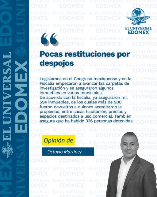 En el caso de Ecatepec han resultado un fracaso los trabajos de la fiscalía y apremia que esa institución atienda el tema porque hay casos donde ya se habían devuelto las propiedades, pero volvieron a ser invadidas.